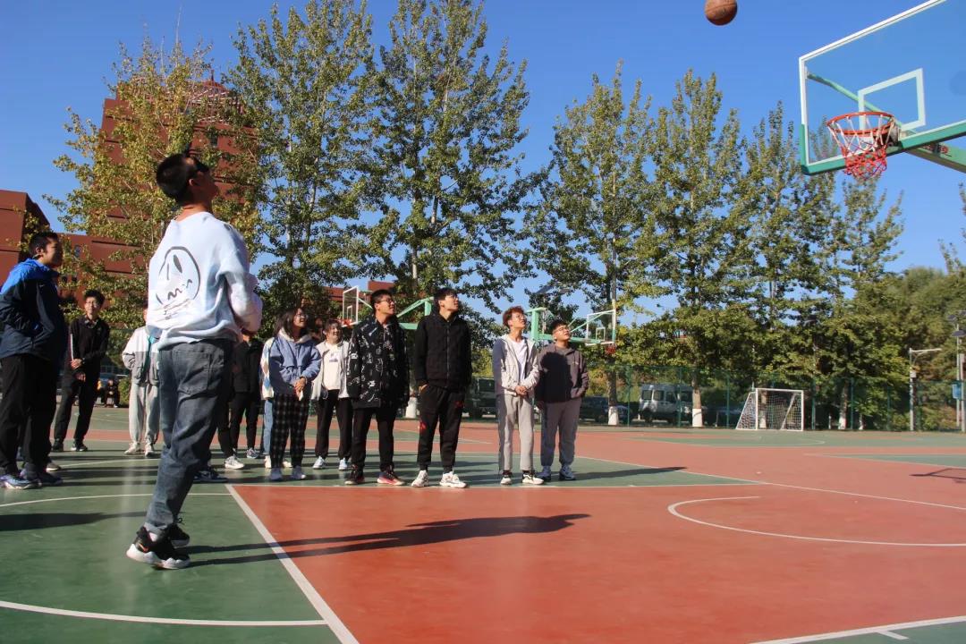 上午九点半,大家来到篮球场,开始了暖场活动——蒙眼投篮。参与者需要戴上眼罩,站在罚球线上进行投篮。随着篮球一次又一次出手,现场气氛逐渐升温,欢笑声及偶尔进球的惊呼与掌声连成一片,同让人瑟瑟发抖的北方深秋形成鲜明的对比。