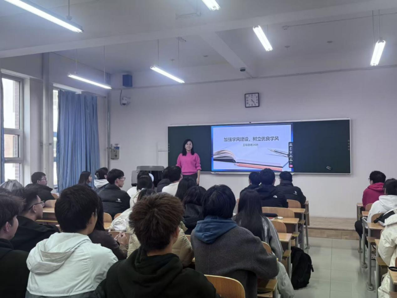 班会上,班主任老师首先结合当前学风现状,从学习态度、课堂纪律等多个维度进行了深入分析,强调了优良学风对个人成长、班级凝聚力及学校人才培养质量的重要意义。同时,围绕学习规划、学术诚信和习惯养成等方面展开,引导同学们明确学习目标,端正学习态度,以饱满的精神投入课堂学习。