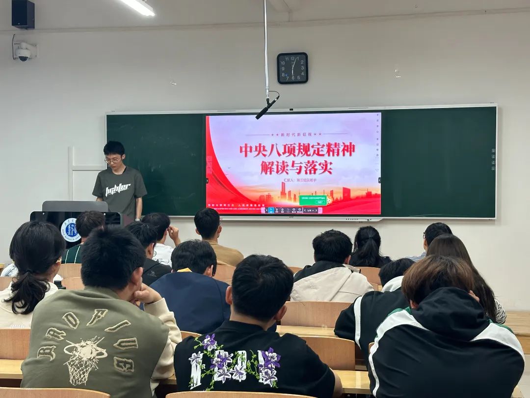 通过思想的碰撞与交流,同学们深刻认识到八项规定精神对作风建设的重要意义,纷纷表示要以此次读书会为契机,从自身做起,严守纪律规矩,弘扬清正廉洁之风,在求学与成长道路上永葆初心,以实际行动践行新时代青年的责任与担当。