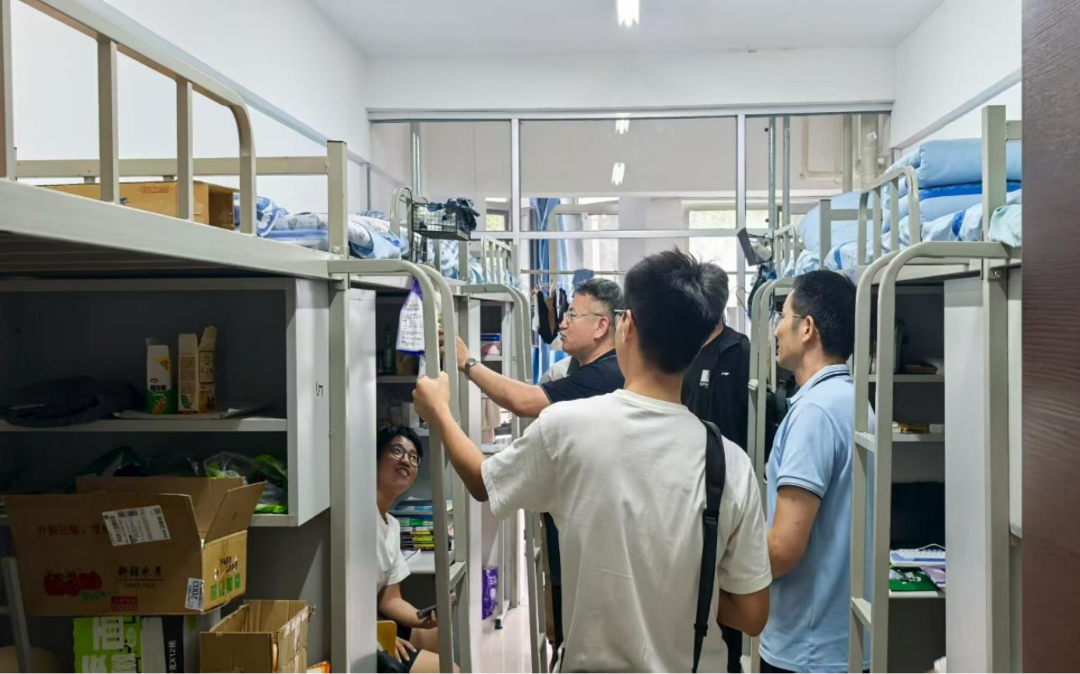 每走进一间宿舍,老师们主动与同学们热情地打招呼,仔细查看住宿环境,深入了解新生对新环境的适应情况,并叮嘱他们要注意用电安全、消防安全及财产安全,共同维护好宿舍的环境卫生。