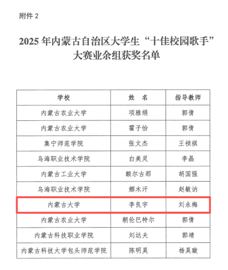【喜报】 我系李良宇同学在内蒙古自治区2025年“十佳校园歌手”大赛中喜获殊荣