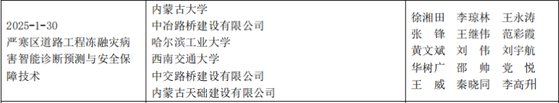 该项目由内蒙古第一批“英才兴蒙”团队项目——寒区工程安全与生态健康团队作为主要攻关团队(负责人:徐湘田),联合中冶路桥建设有限公司、哈尔滨工业大学、西南交通大学、中交路桥建设有限公司、内蒙古天础建设有限公司等单位,构建了“高校引领、校企协同、产学研深度融合”的联合攻关体系。