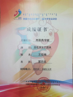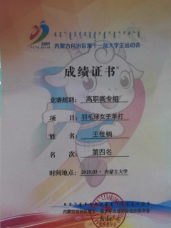桥梁工程系质检1735班王佳楠同学在内蒙古自治区第十一届大学生运动会羽毛球女子双打比赛中获得第二名优异成绩,在羽毛球女子单打比赛、羽毛球女子团体比赛中均获得第四名优异成绩。